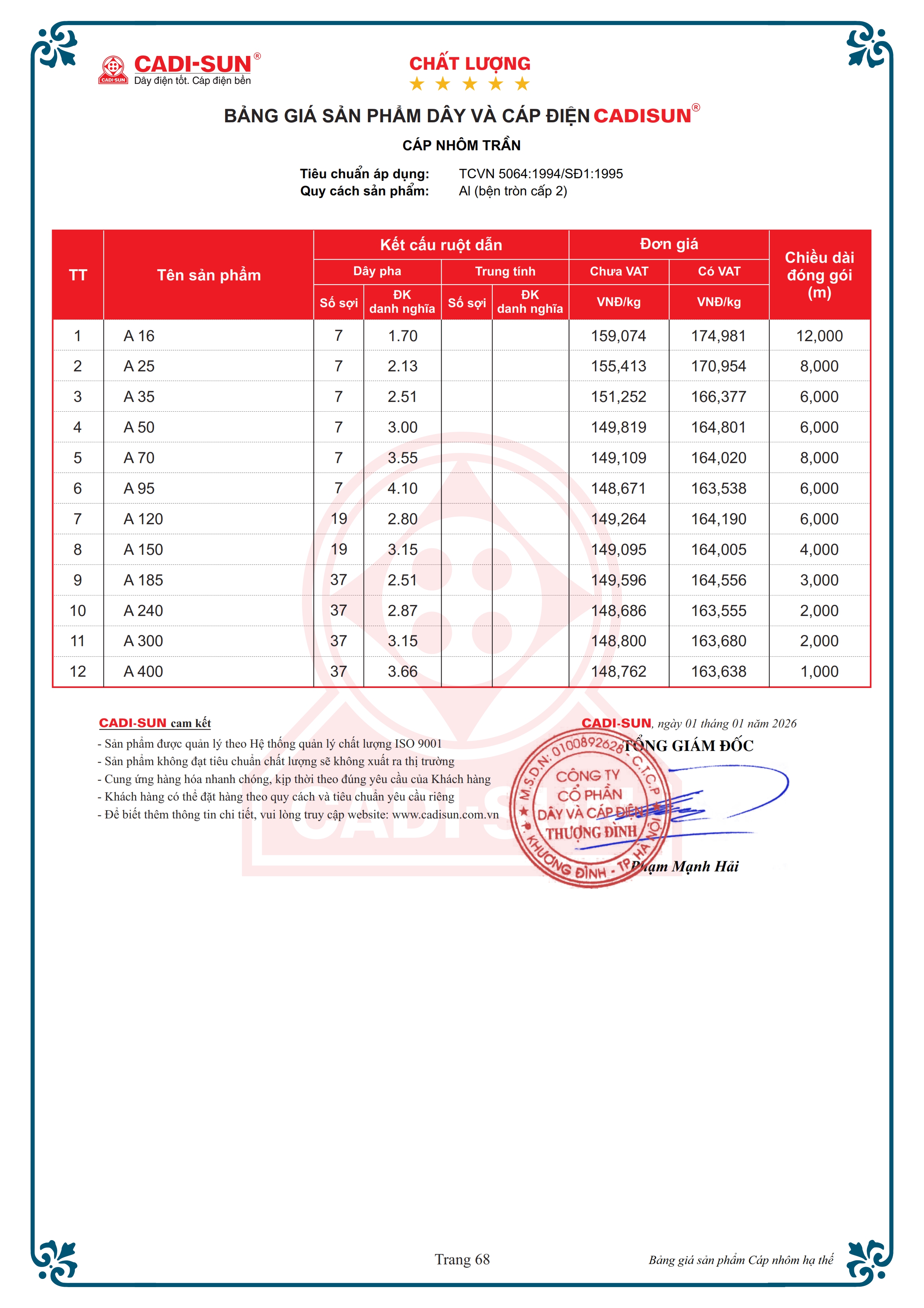 - Mặt cắt danh định: Từ 16 mm