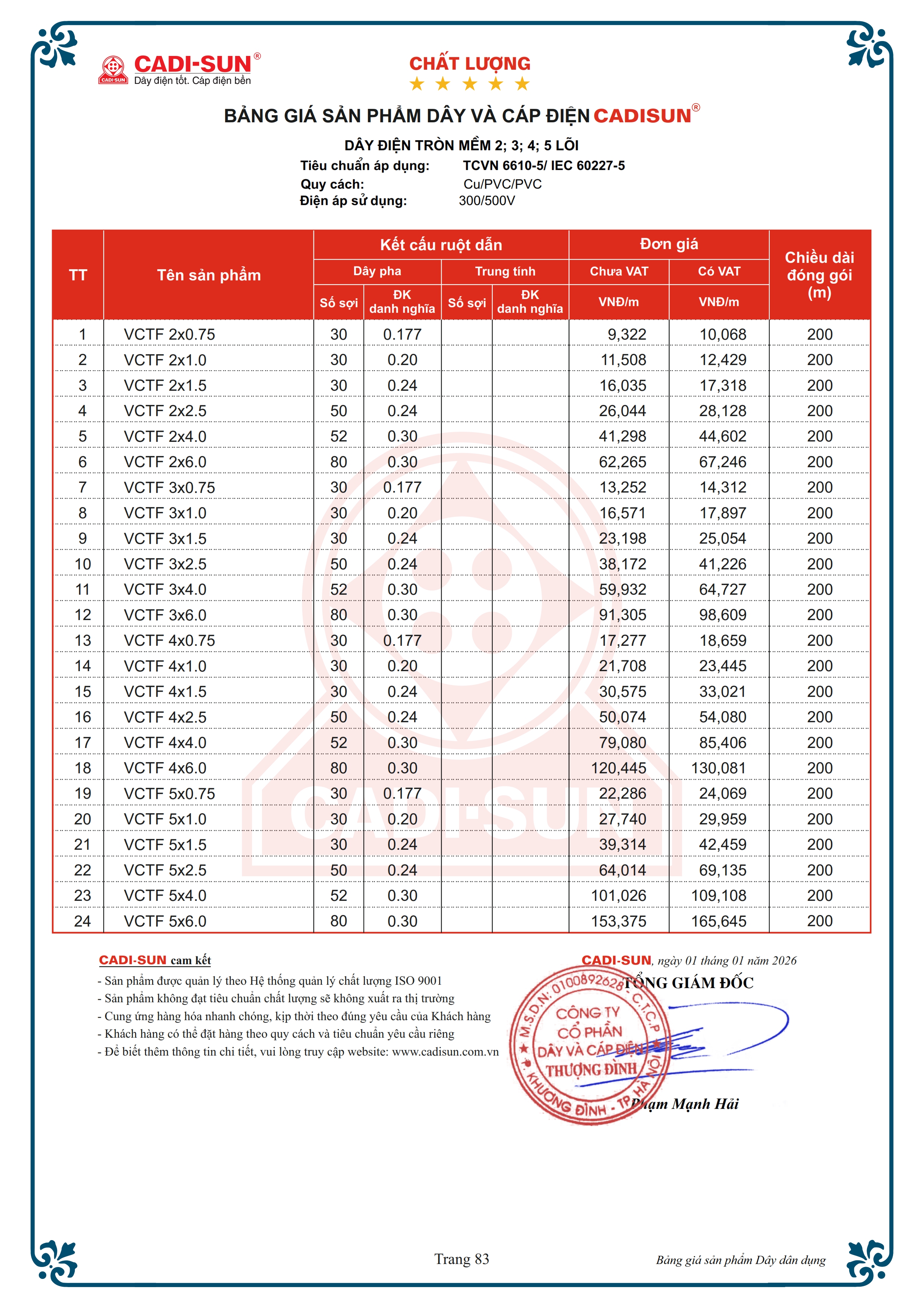 - Quy cách: Cu/PVC/PVC