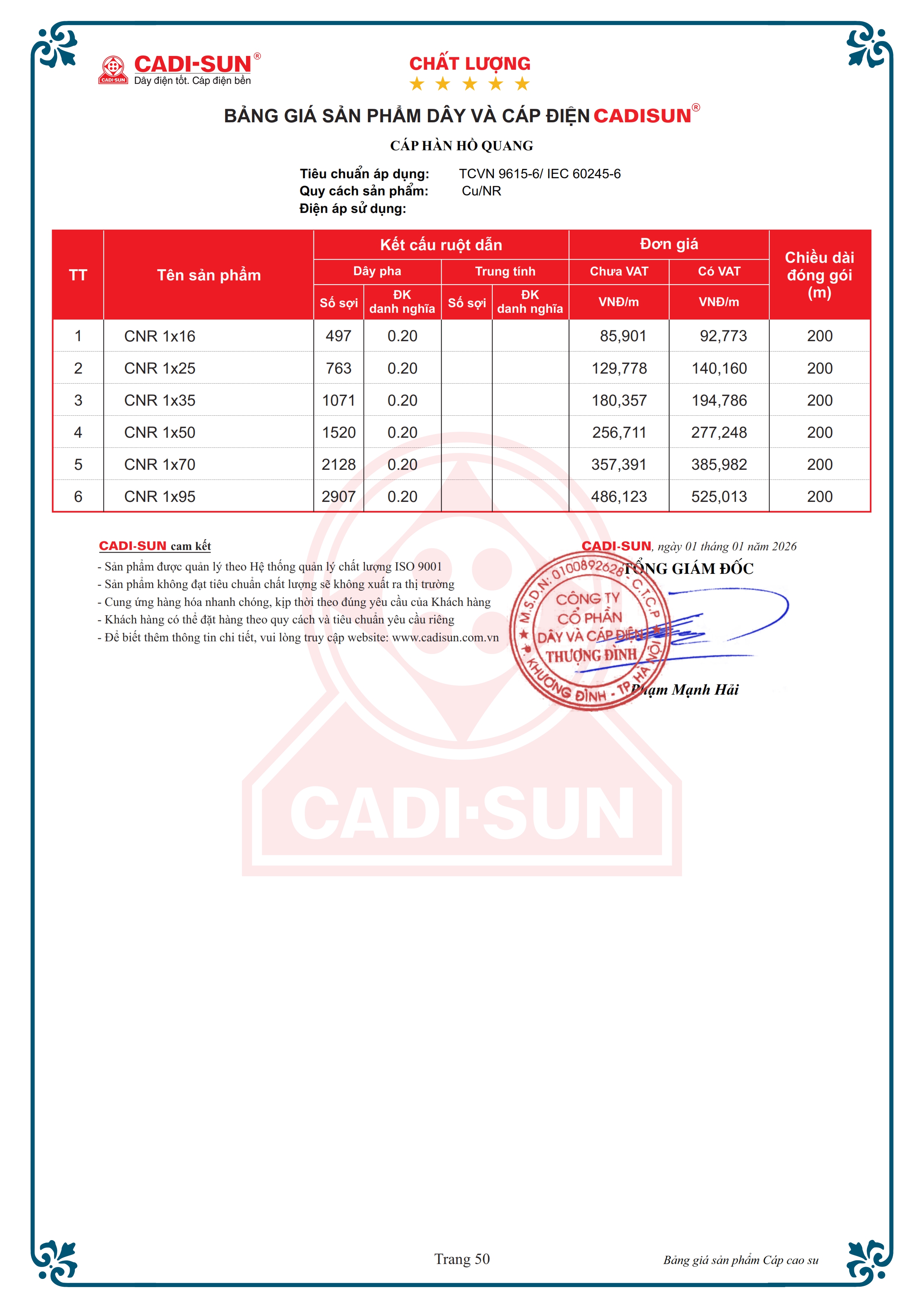 - Vật liệu cách điện và vỏ bọc: Cao su gốc tự nhiên.