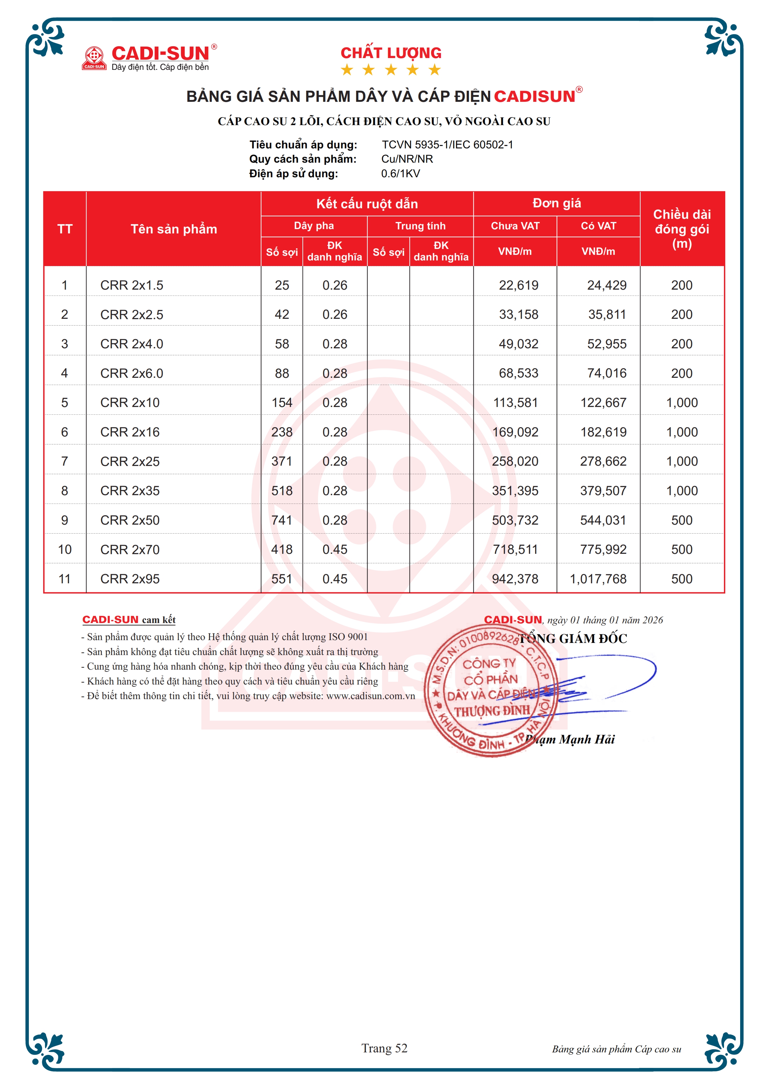 - Quy cách: Cu/NR/NR