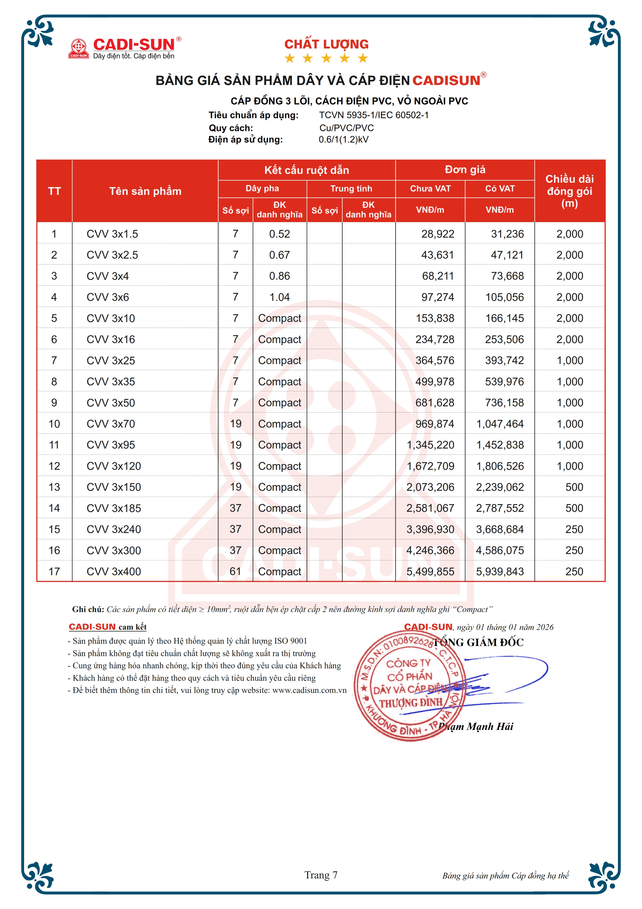 - Quy cách: Cu/PVC/PVC