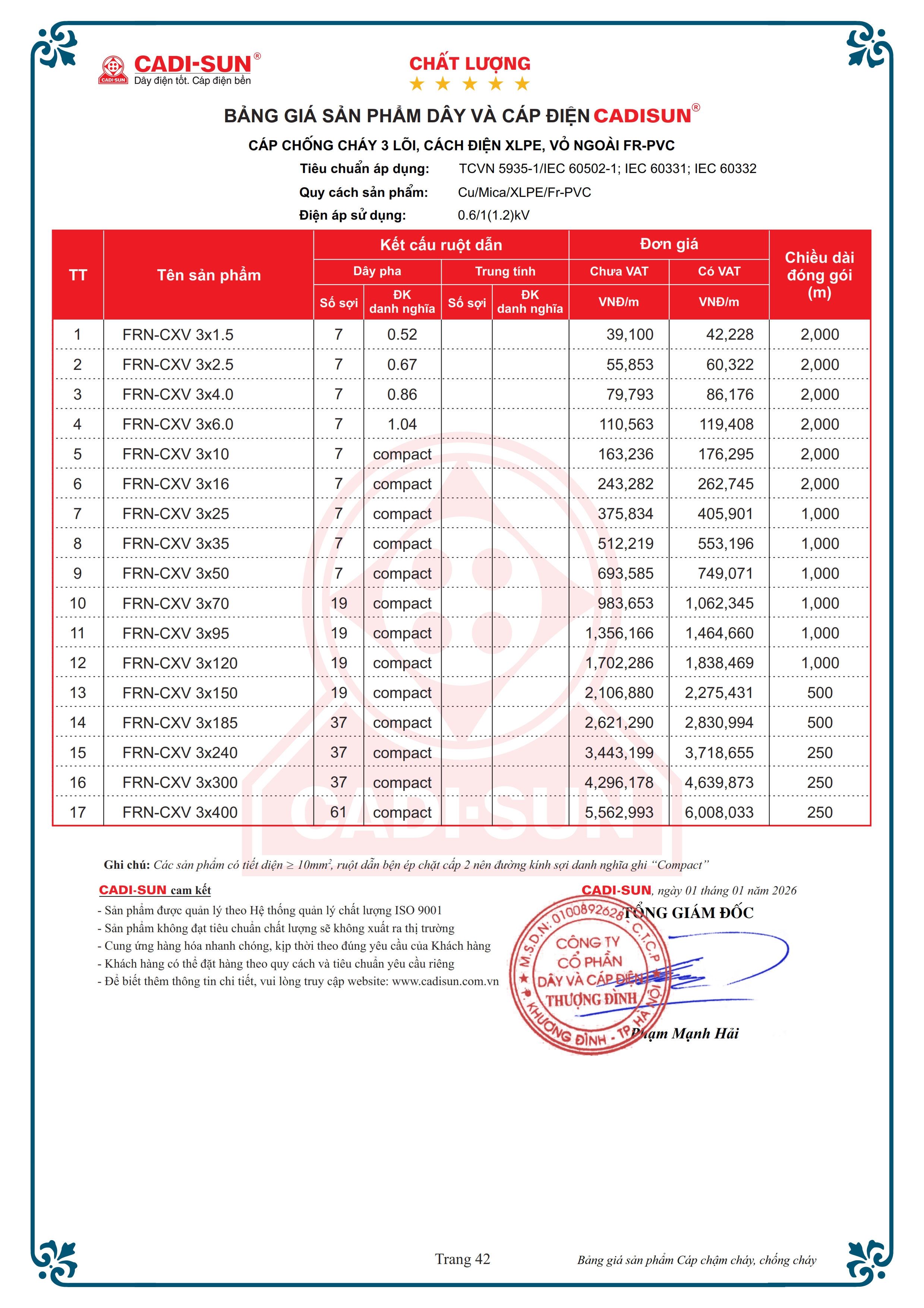 - Quy cách: Cu/Mica/XLPE/Fr-PVC