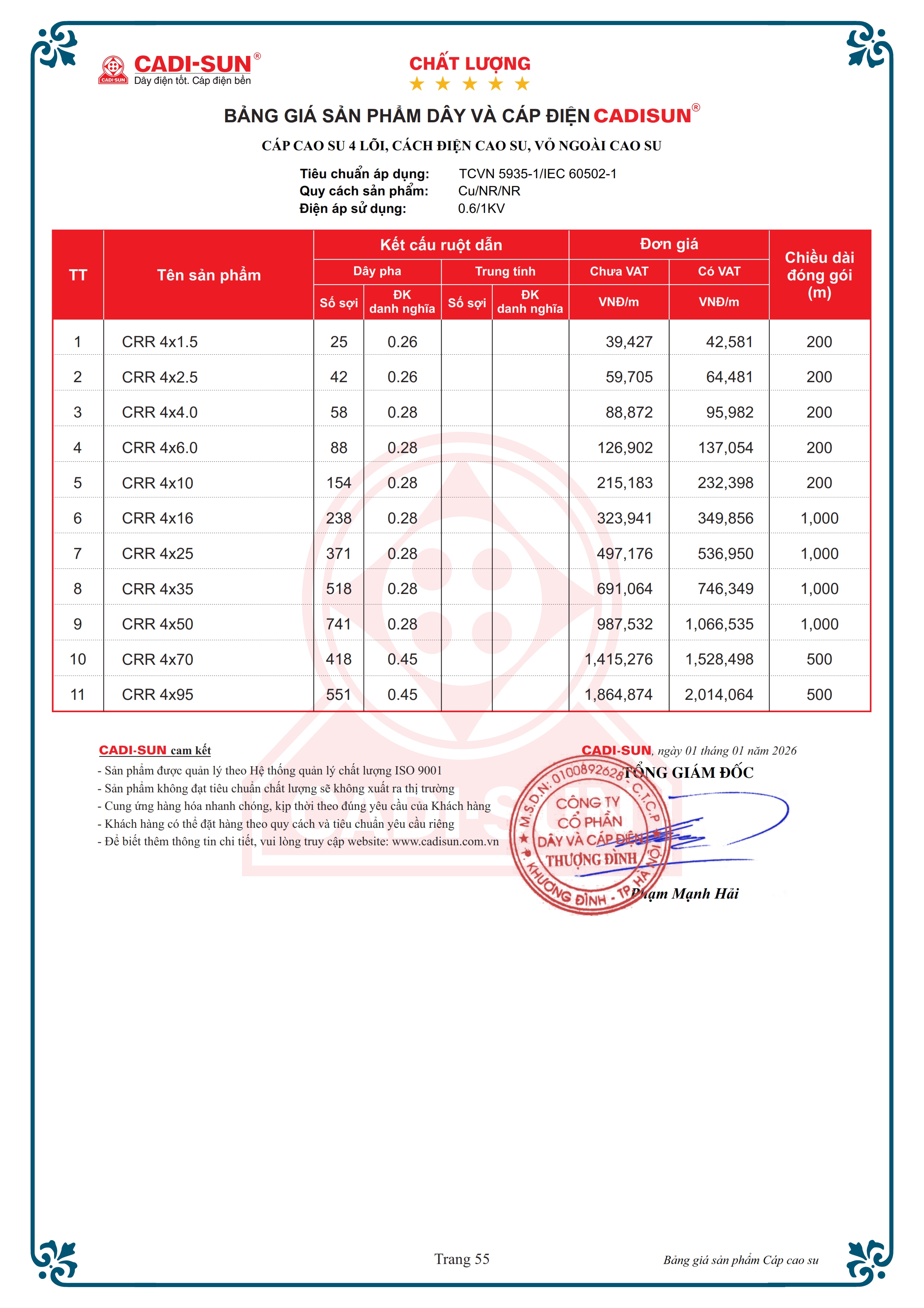 - Vật liệu cách điện và vỏ bọc: Cao su gốc tự nhiên.