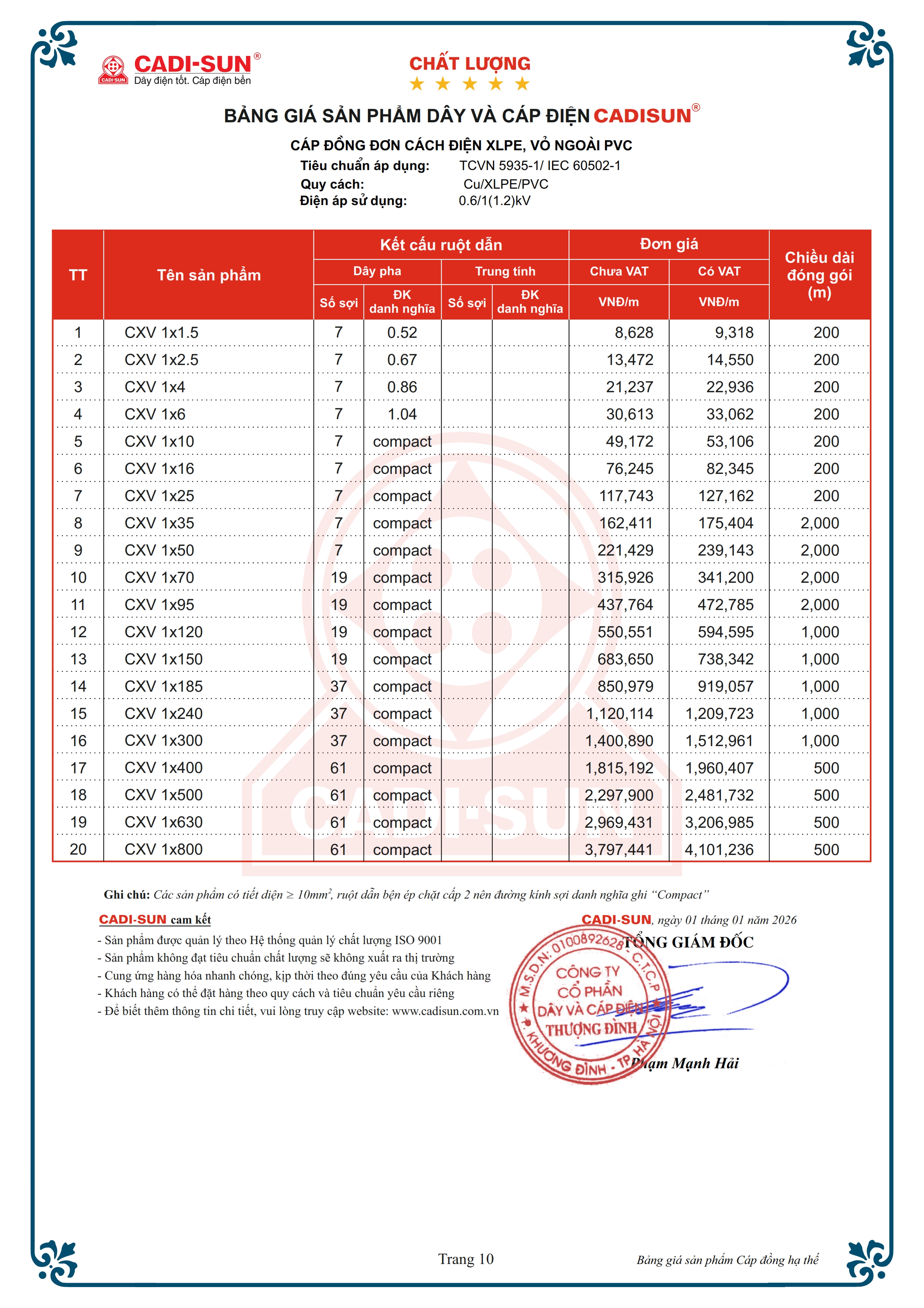 - Quy cách: Cu/XLPE/PVC