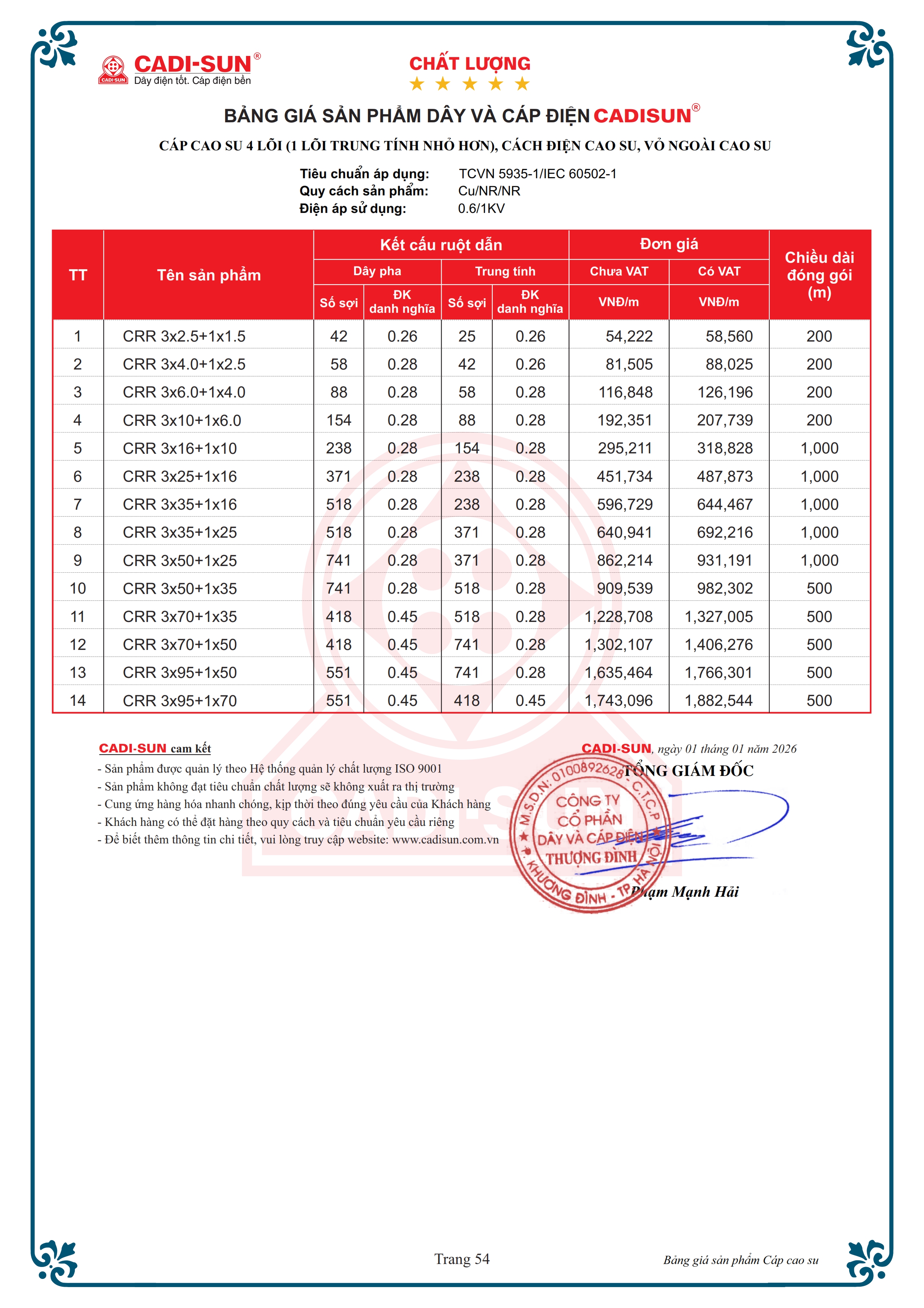 - Quy cách: Cu/NR/NR