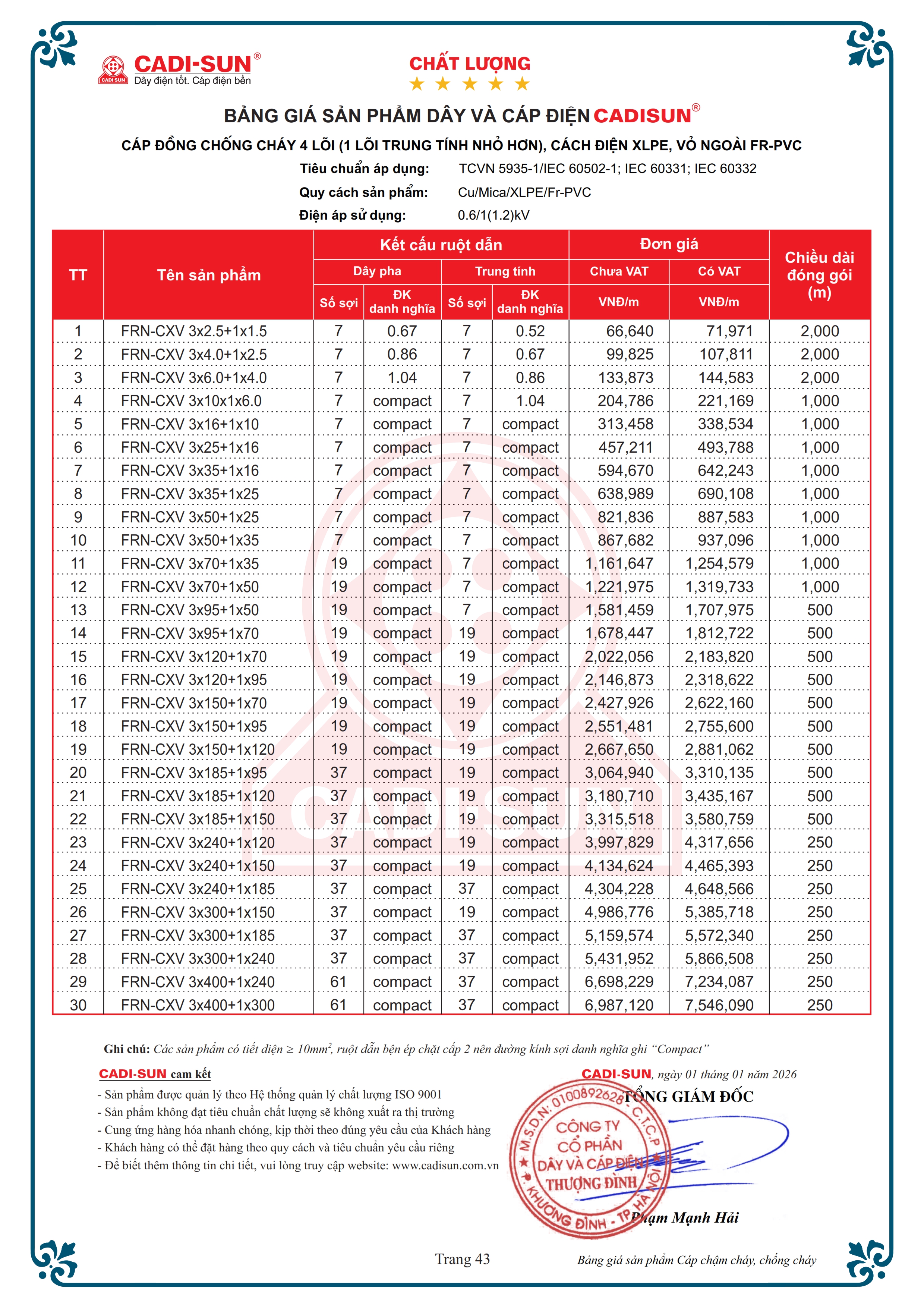 - Quy cách: Cu/Mica/XLPE/Fr-PVC