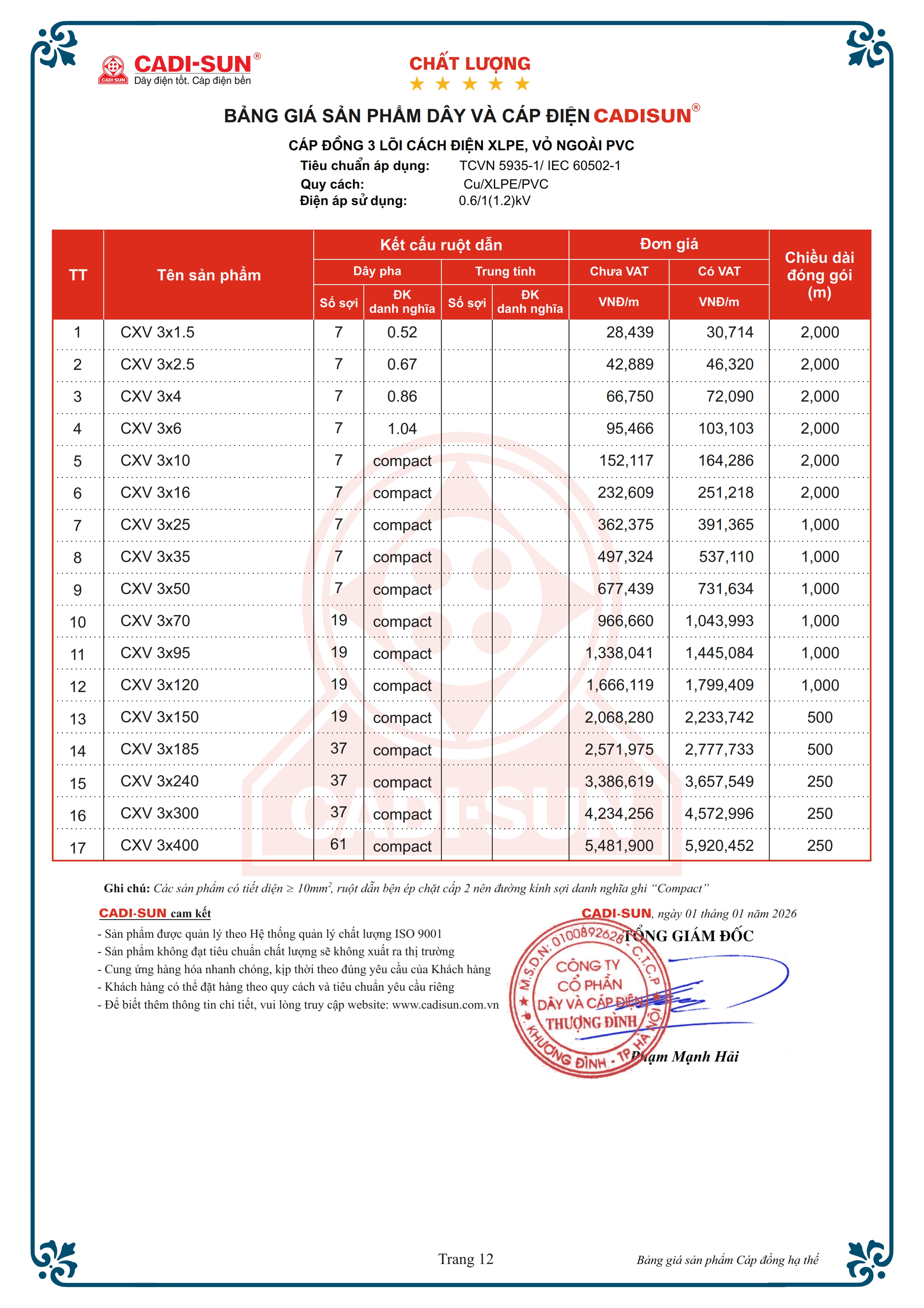 - Quy cách: Cu/XLPE/PVC