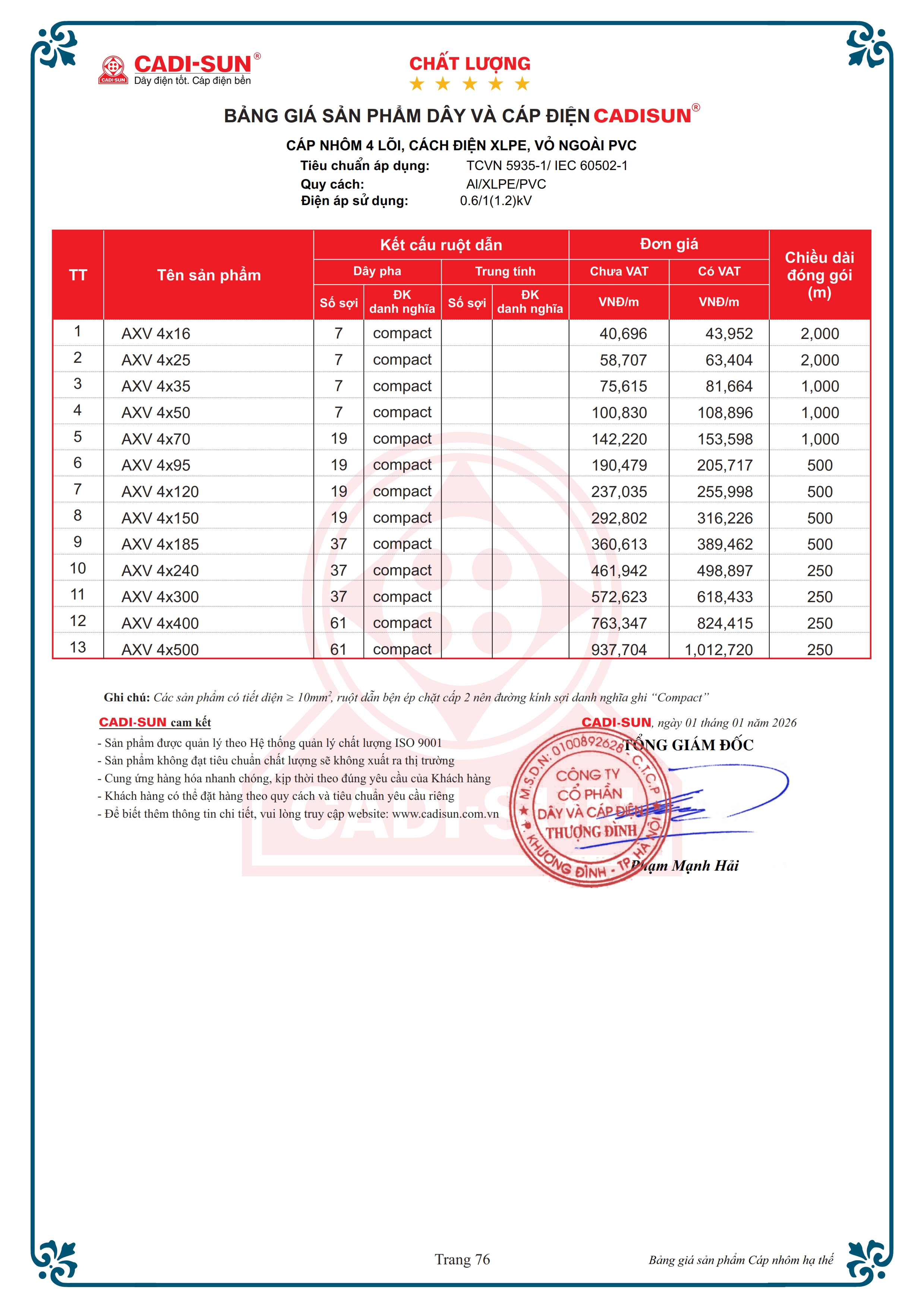 - Quy cách: Al/XLPE/PVC
