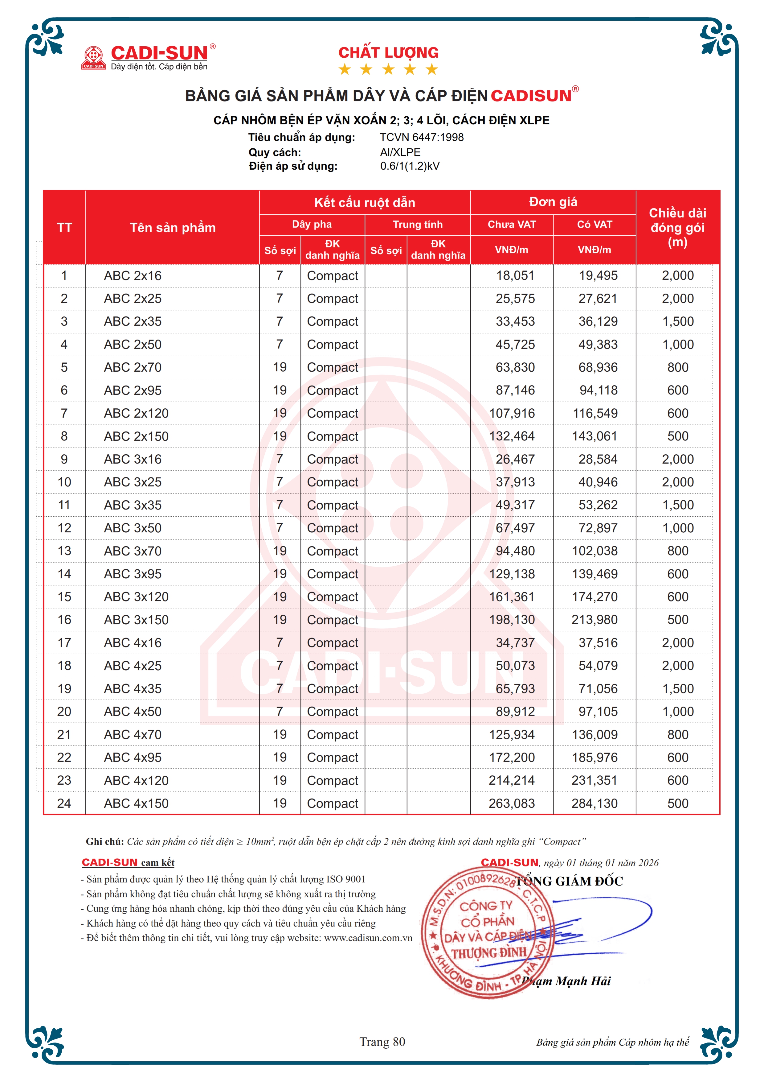 - Quy cách: Al/XLPE